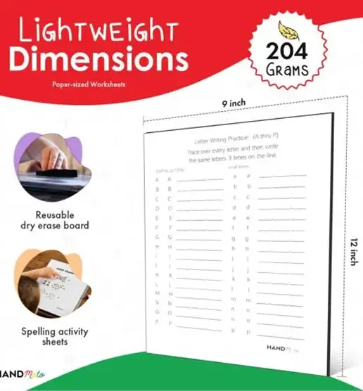 The HandMoto Spelling Board keeps kids actively engaged through tactile, dry-erase spelling activities that build early literacy, focus, and fine motor skills without screens or digital distractions.